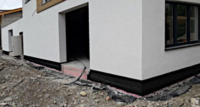 Der Sockelbereich eines Gebäudes ist extrem hohen